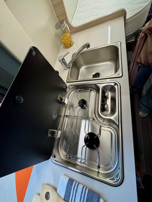 - 2-Flammen-Gasherd, Spüle
